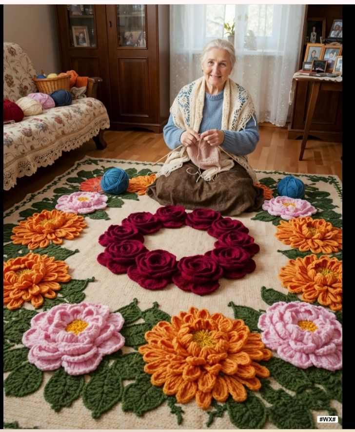 Tejer una manta con un motivo de «ramo de flores» (también conocido como «granny square» o cuadro abuelo con flores)