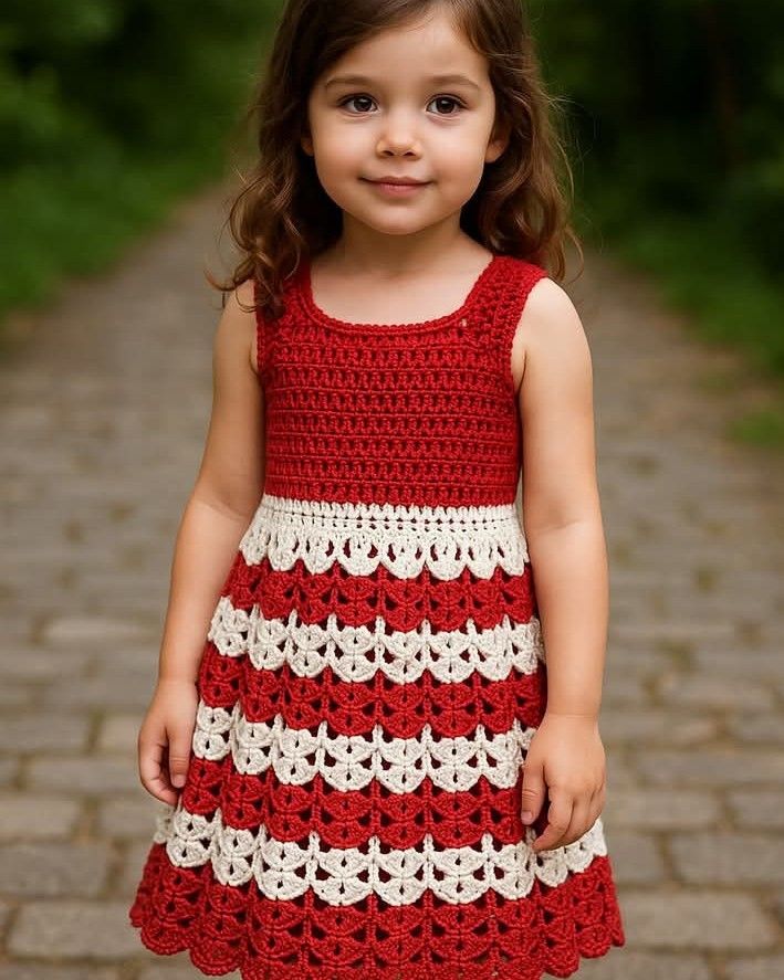 ## 🧶 Vestido Tejido para Niña – Paso a Paso### ✨ Materiales- Hilo de algodón en dos colores: rojo y