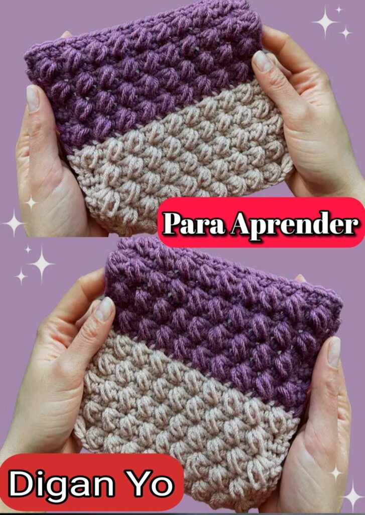 ## đź§µ Paso a paso para hacer un bolso con puntada burbuja ### ✨ Materiales:– Hilo grueso (dos colores si